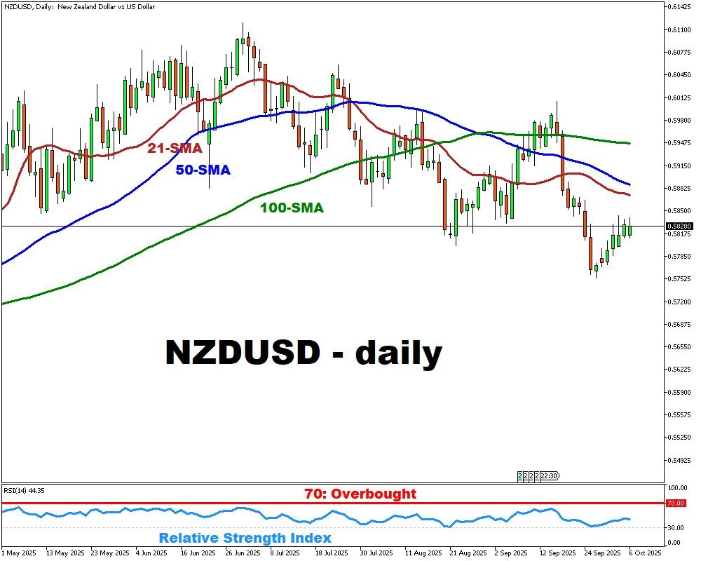 The RBNZ currently holds its policy rate at 3.00% following its August cut, and markets expect further easing ahead. The base case is another 25-bps cut, but a more aggressive 50 bps move can’t be ruled out given weak GDP and soft global demand. A dovish tilt or bigger cut will likely pressure NZDUSD, while a smaller move or hawkish nuance could spark a reversal.