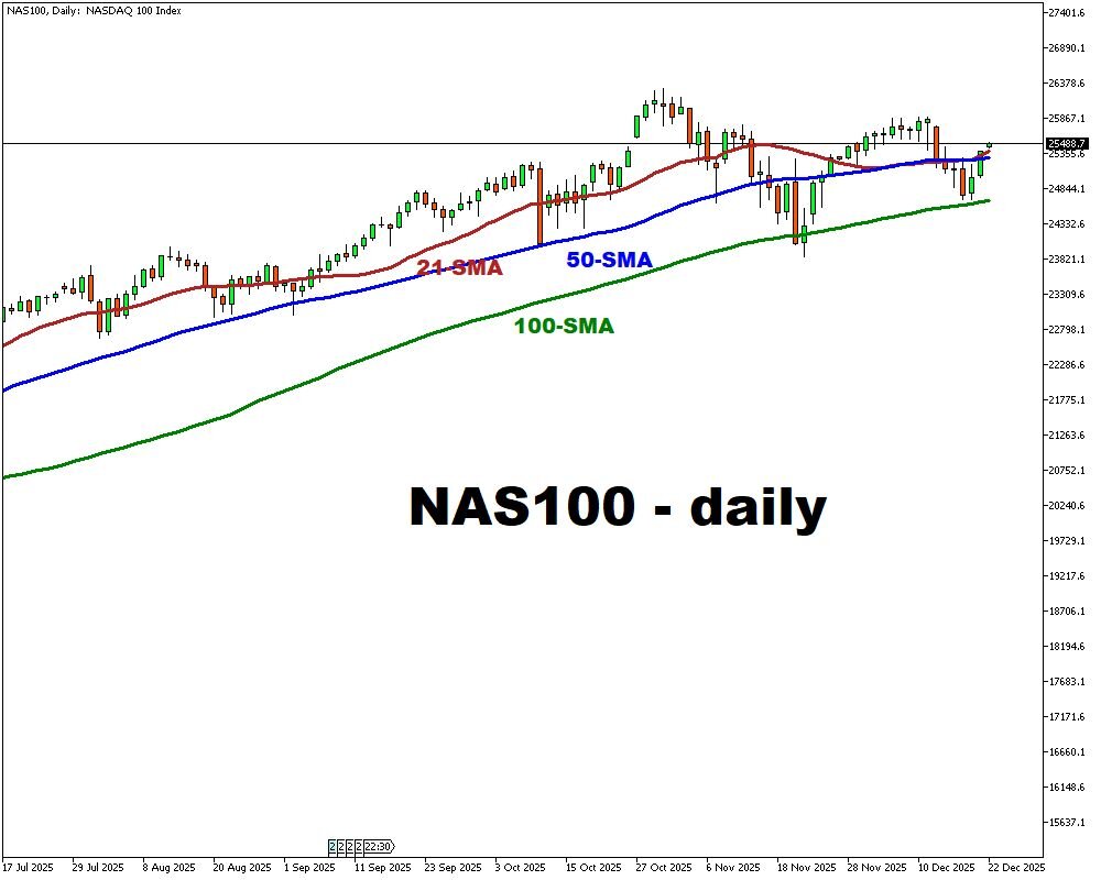 US markets close early for Christmas Eve, but we could see some last-minute action due to the initial jobless claims data. Signs of weakness in the labour force may offer one last boost to NAS100 before markets close for Christmas.